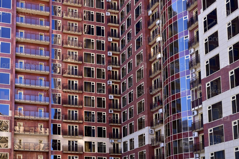 Фасад современного жилого дома в Москве, Россия