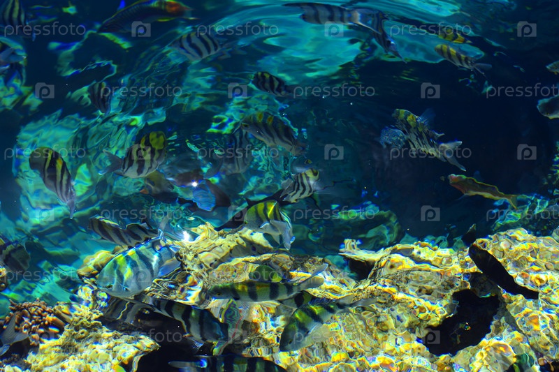 Разноцветные рыбки в аквариуме