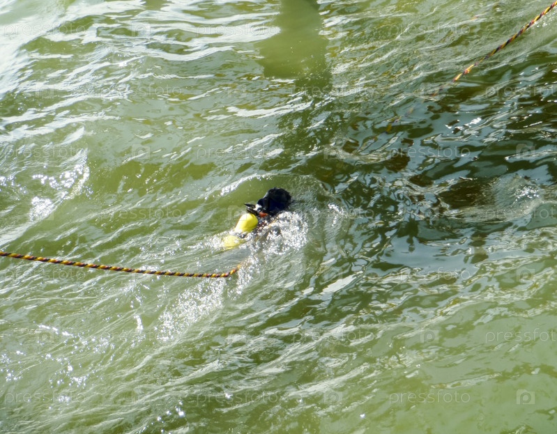 Дайвер погружается в воду с веревкой безопасности