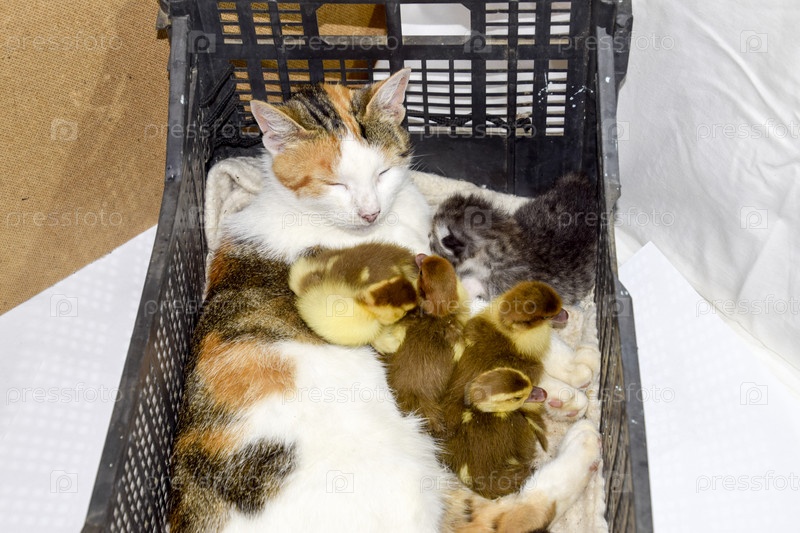 Кошка с утятами