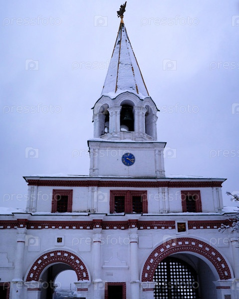Передние ворота Коломенского с колокольней в Москве, Россия