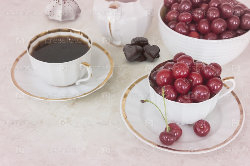 Кофе и вишни в чашке