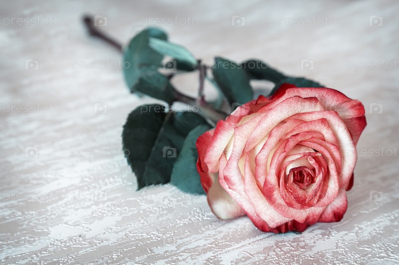 Красивая цветущая роза с зелеными листьями