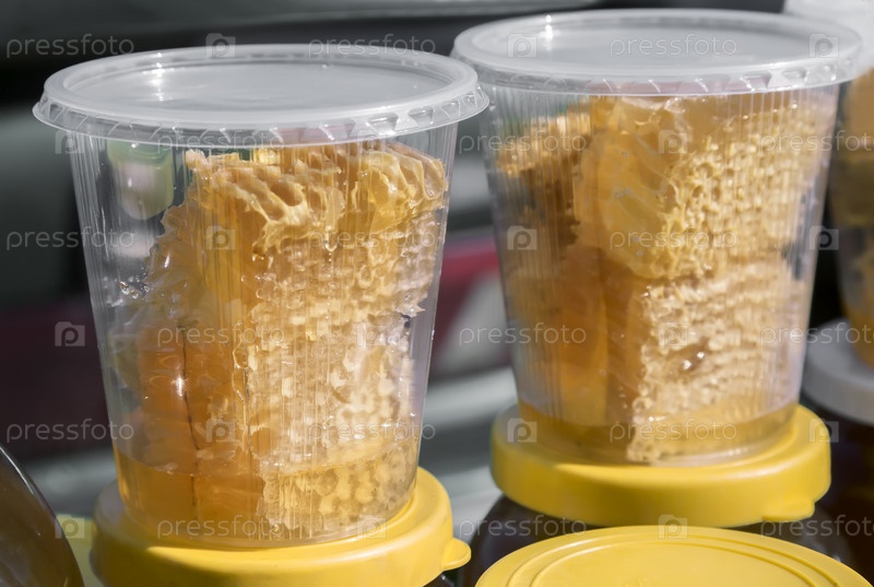 Соты с медом в маленьких контейнерах