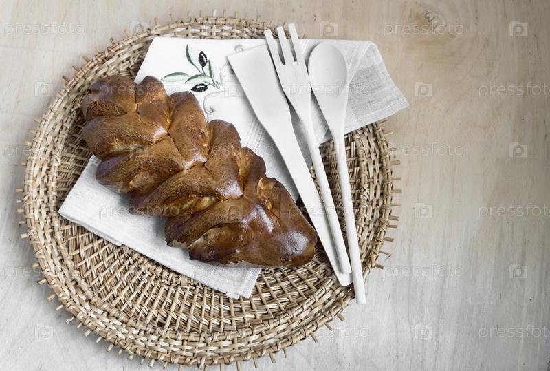 Аппетитный сладкий белый хлеб на салфетке