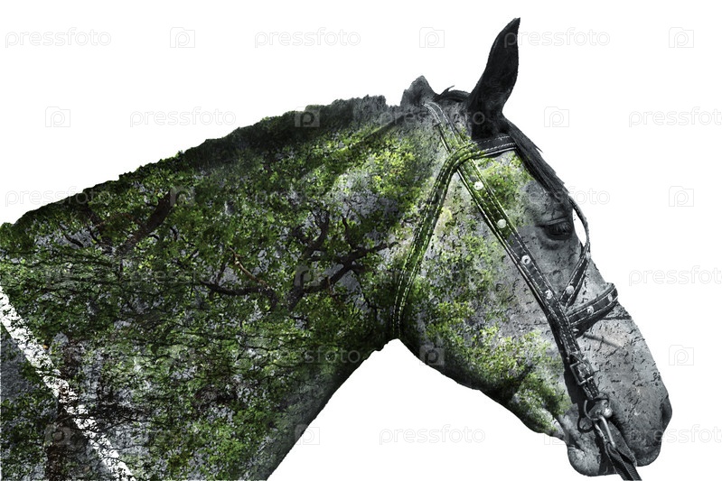 Голова лошади и лес. Двойная экспозиция