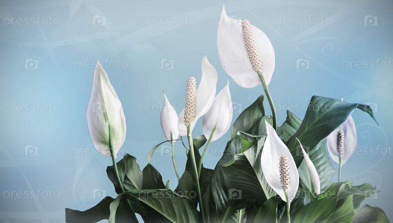Цветущие белые цветы Спатифиллум