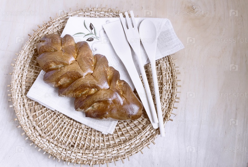 Аппетитный сладкий белый хлеб на салфетке