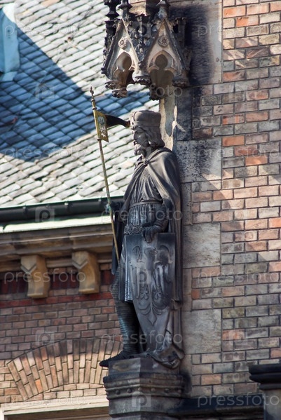 Архитектурные детали замка с черной черепичной крышей. Прага, Чехия