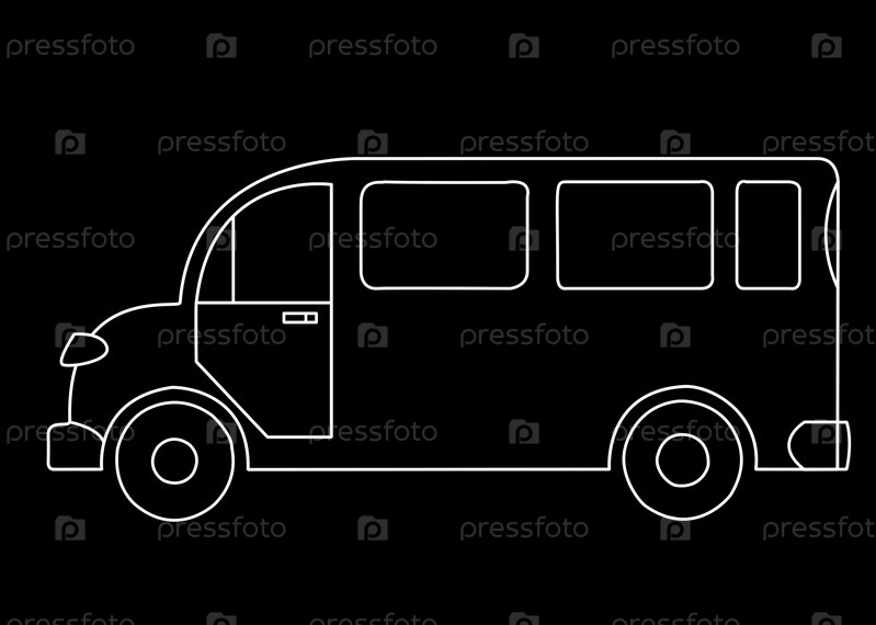 Габаритный чертеж пассажирского автобуса на черном фоне