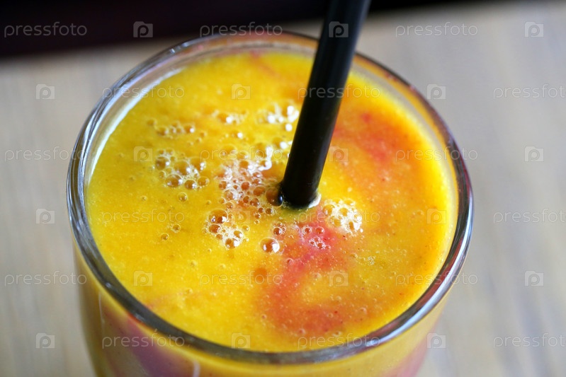 Фруктовый сок в стакане с соломинкой