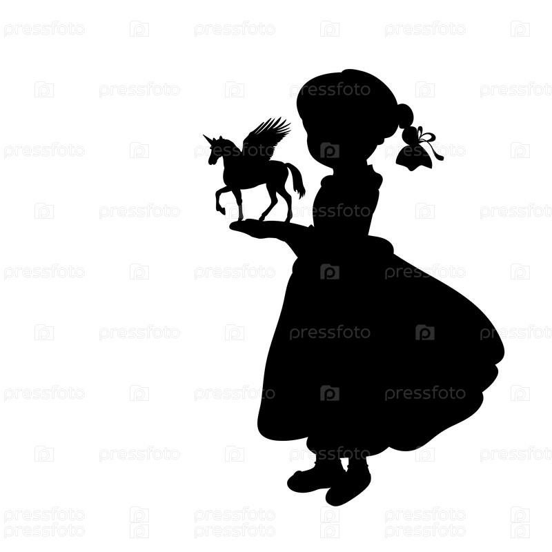 Силуэт девочки с единорогом