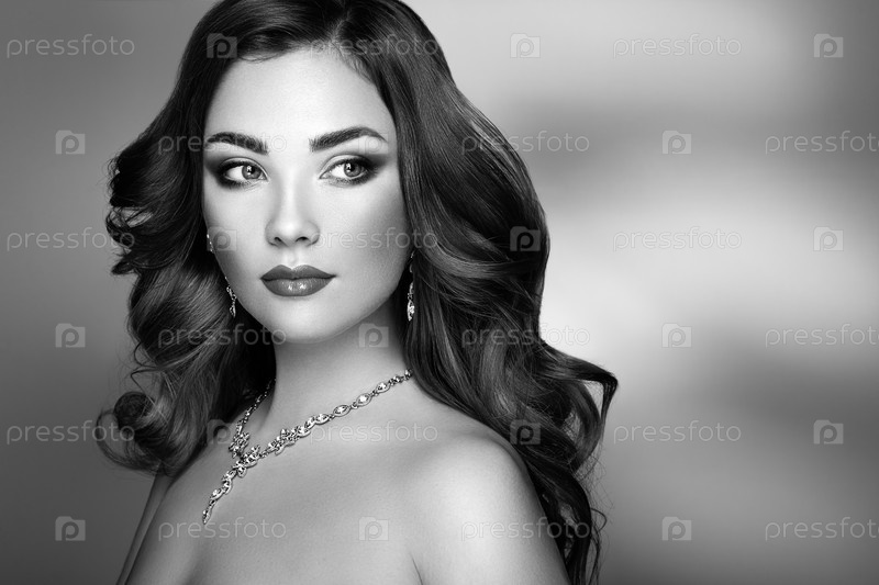 Брюнетка с длинными блестящими волнистыми волосами