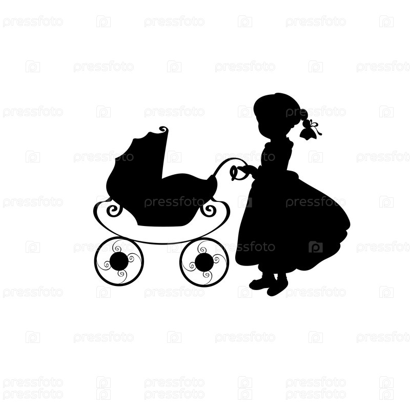 Силуэт девочка с коляской