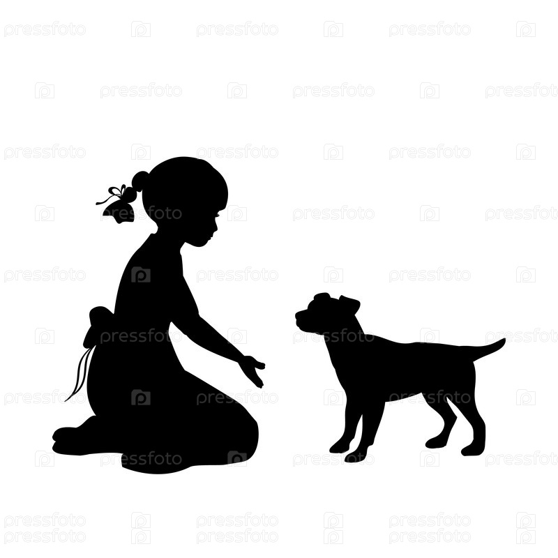 Силуэт девочка сидит в коленях с собакой