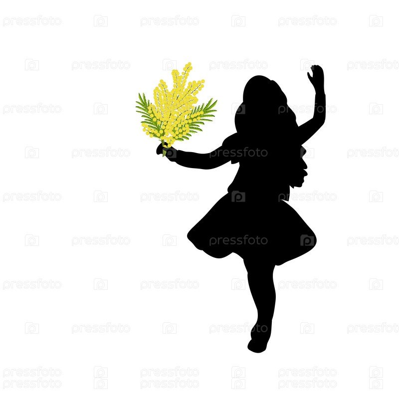 Силуэт девочка держит мимозу