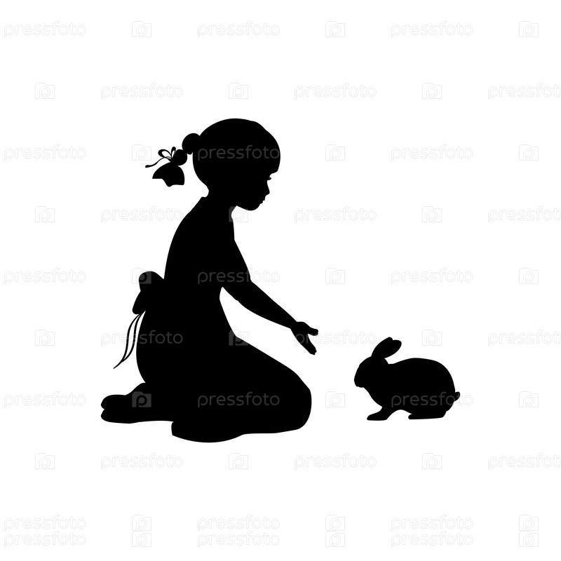 Силуэт девушки, сидящей на коленях с кроликом