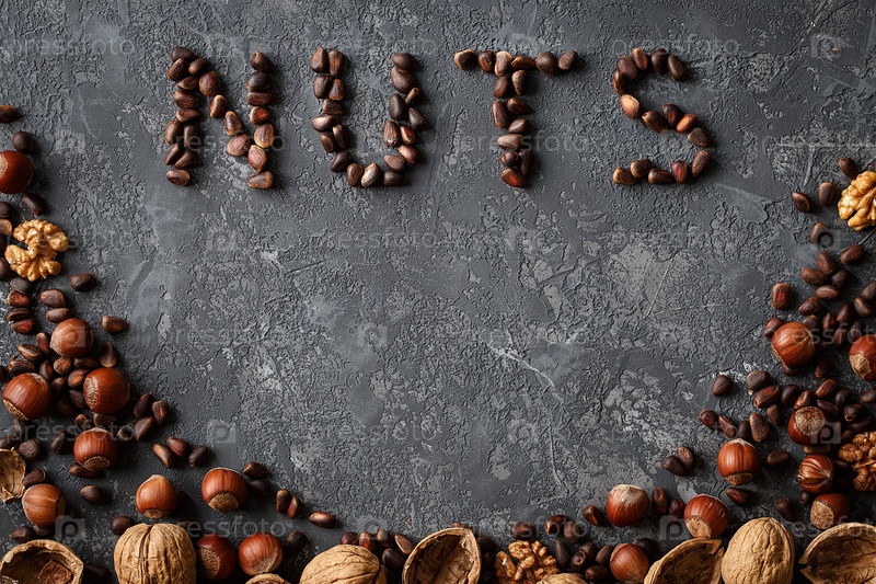 Надпись орехи, из разных орехов