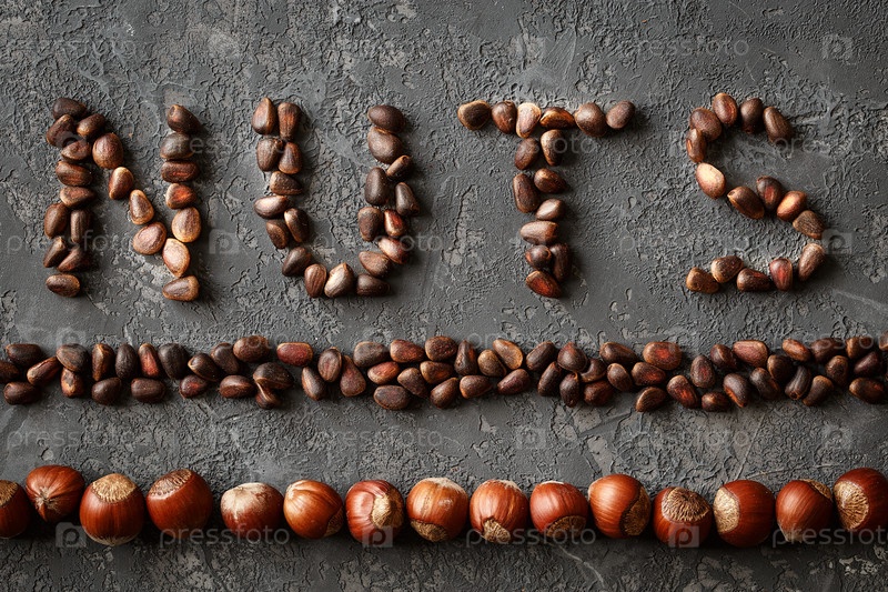 Надпись Орехи, из разных орехов