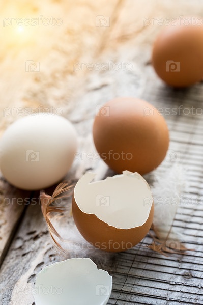 Яйца на деревянном фоне