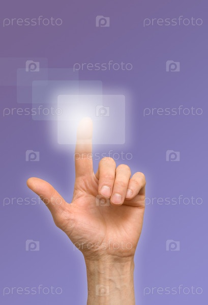 Рука нажимает интерактивную кнопку