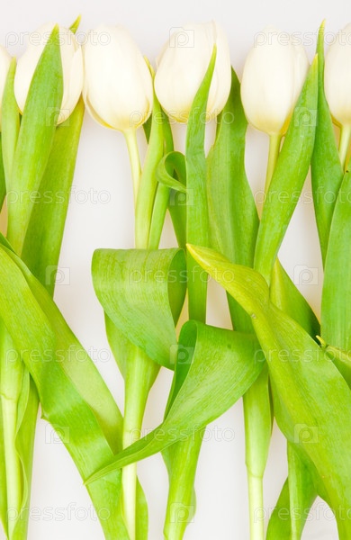 Красивые белые тюльпаны на белом фоне