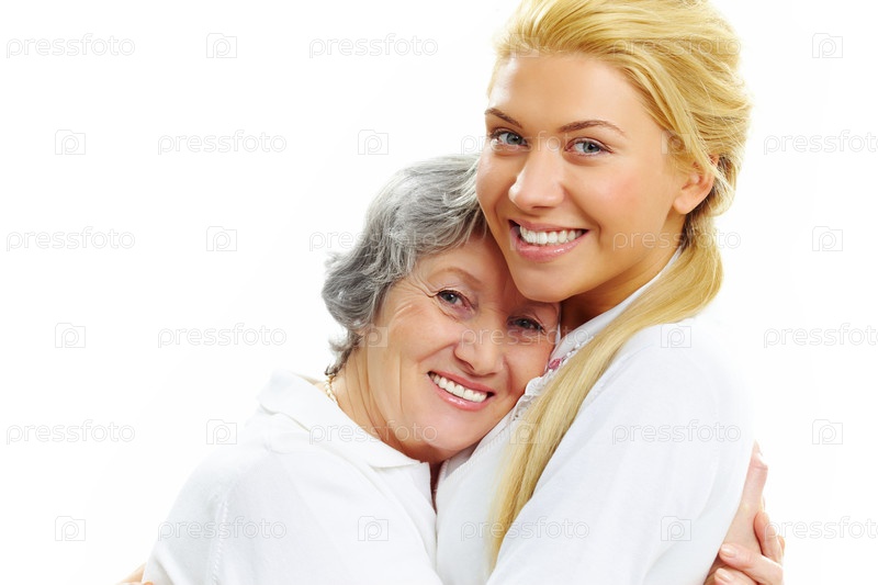 Мама и дочь на белом фоне
