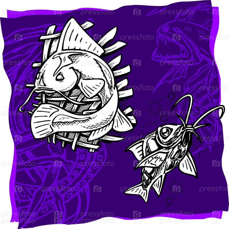 Изображение рыб на фиолетовом фоне