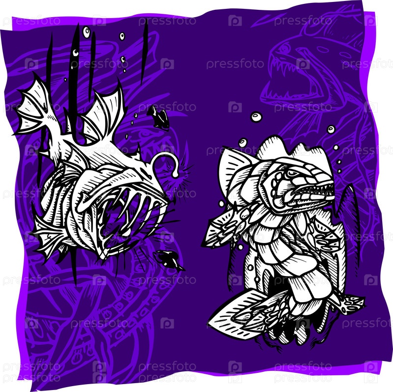 Изображение рыб на фиолетовом фоне