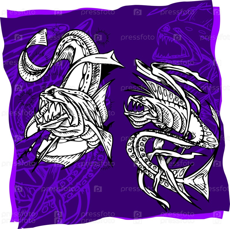 Опасные рыбы на фиолетовом фоне