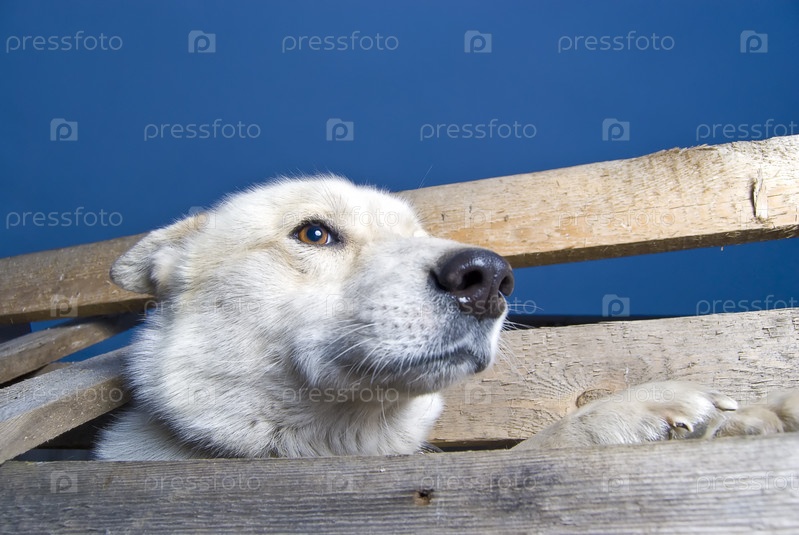 Собака пытается сбежать, перепрыгнув через забор