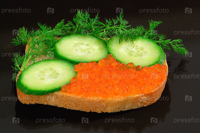Бутерброд с икрой на черном фоне