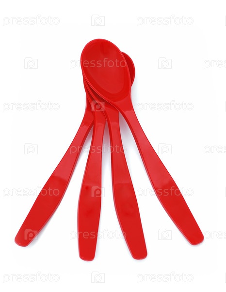 Красные ложки на белом фоне
