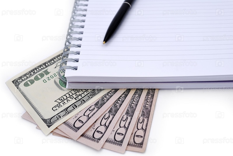 Ручка и записная книжка на долларах
