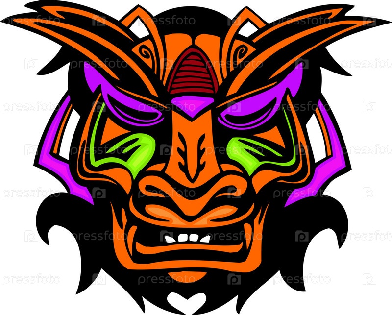 Устрашающая древняя маска на белом фоне, вектор