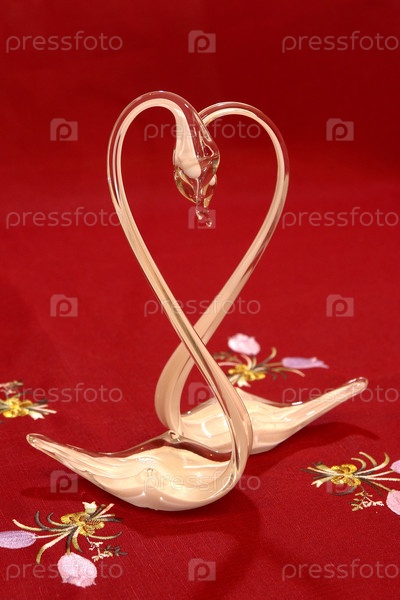 Стеклянные лебеди на красном фоне