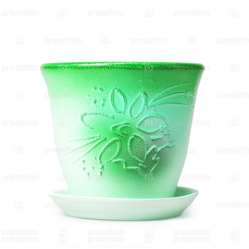 Зеленый цветочный горшок на белом фоне