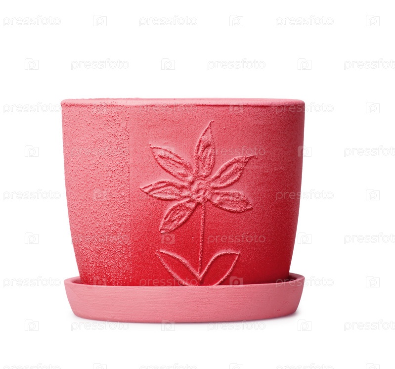 Красный цветочный горшок на белом фоне