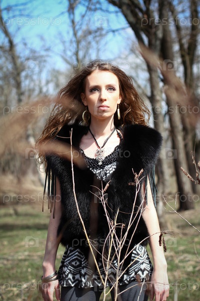Молодая модная женщина весной или осенью в парке