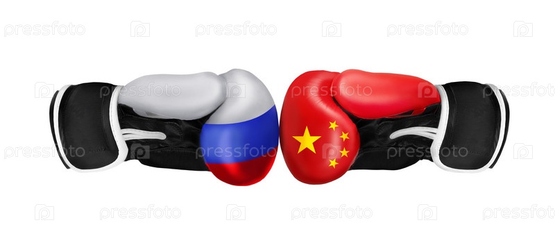 Боксерские перчатки на белом фоне - Россия против Китая