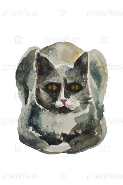 Домашняя кошка, акварель