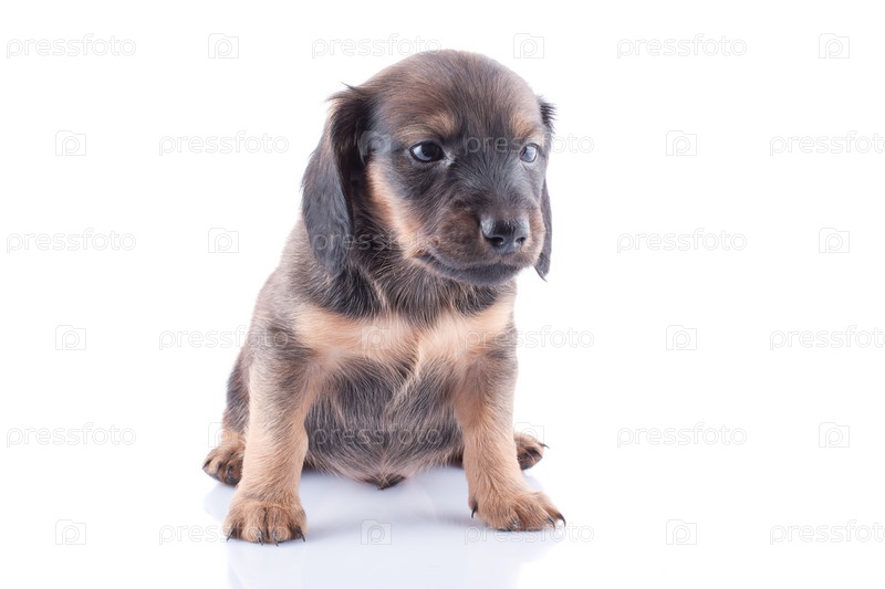 Маленький щенок таксы на белом фоне