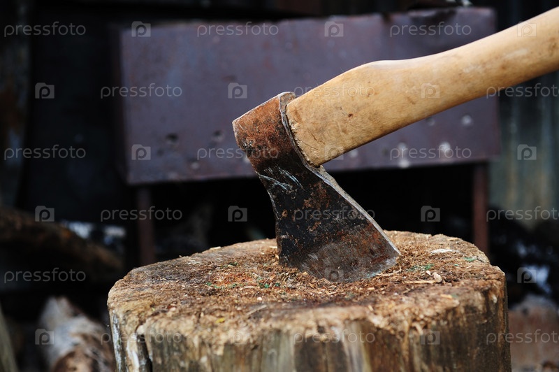 Топор, воткнутый в колоду