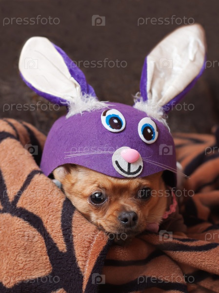 Рыжая чихуахуа в костюме кролика