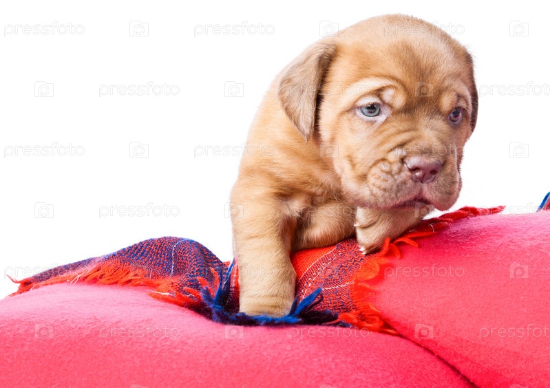 Щенок бордосского дога на подушке