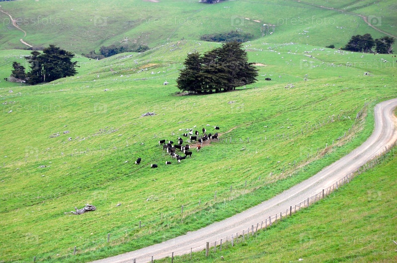 Гравийная дорога и коровы на сельскохозяйственных землях