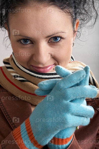 Симпатичная девушка в голубых перчатках