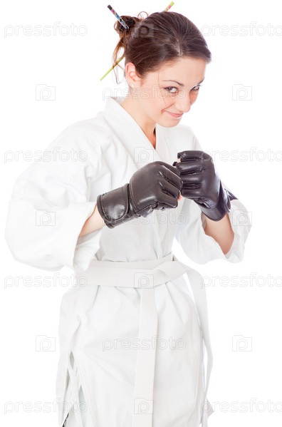 Девушка в кимоно на белом фоне