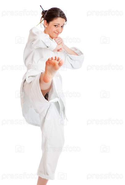 Девушка в кимоно на белом фоне