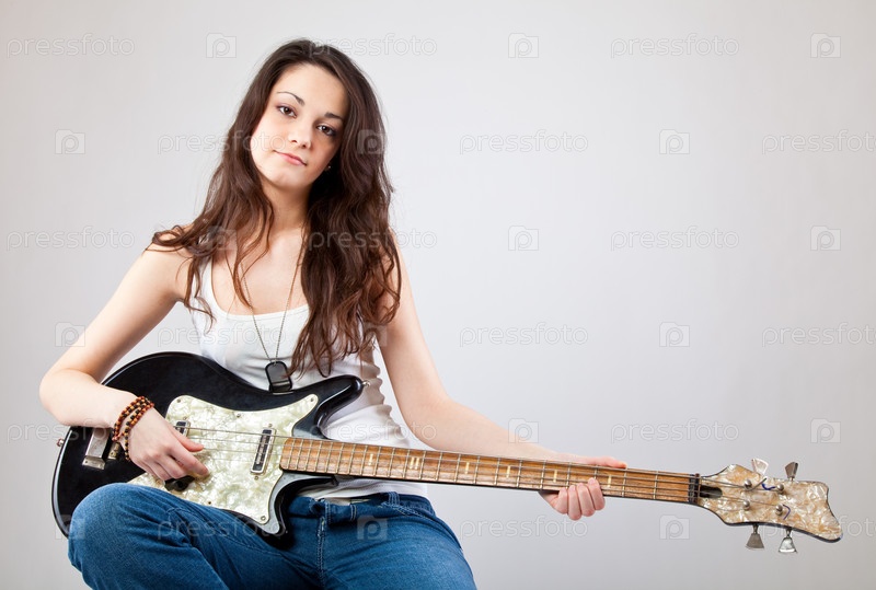 Девушка подросток играет на гитаре